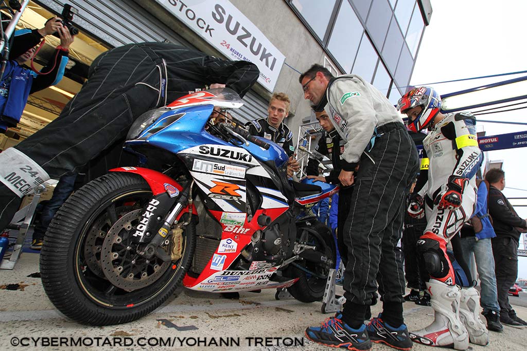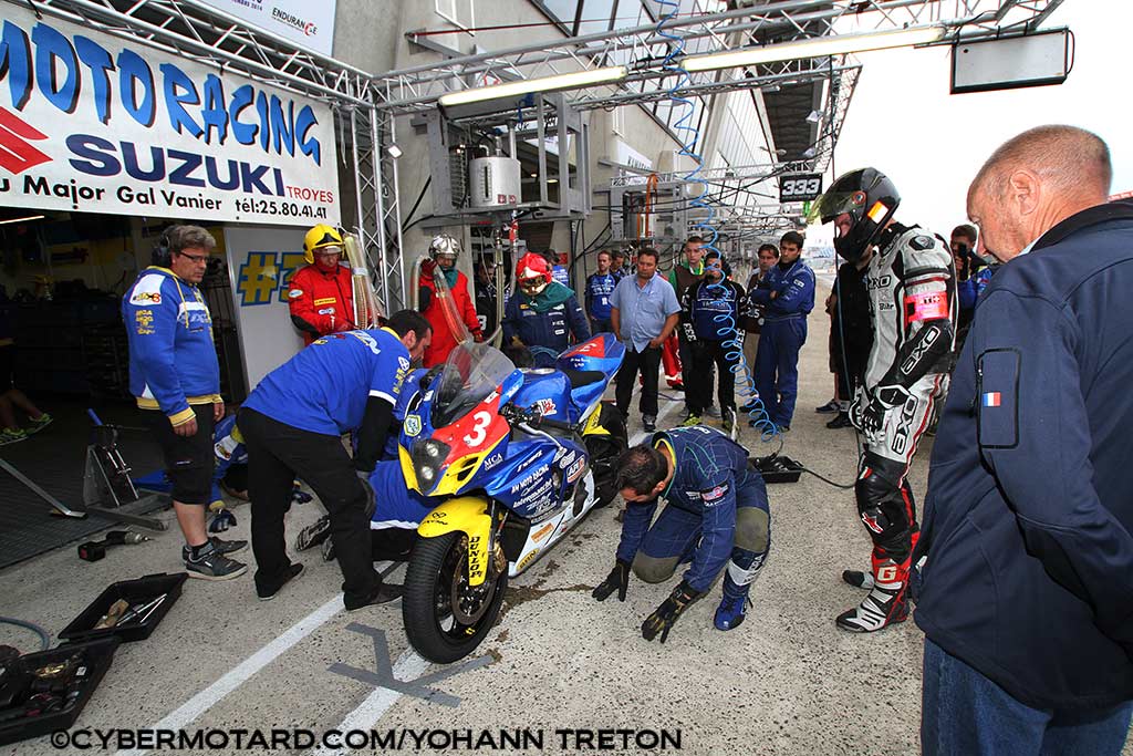 Le pilote sarthois ramène la moto au stand, elle en ressortira quelques minutes après, non sans avoir perdu la tête de la catégorie. Etienne Masson reprend le guidon et se lance à la poursuite de la Kawasaki N°95. Les dernières heures de course devraient être intenses et si le Junior Team se maintient au classement, Damien Saulnier et ses hommes pourrait enfin accrocher le titre mondial Superstock !