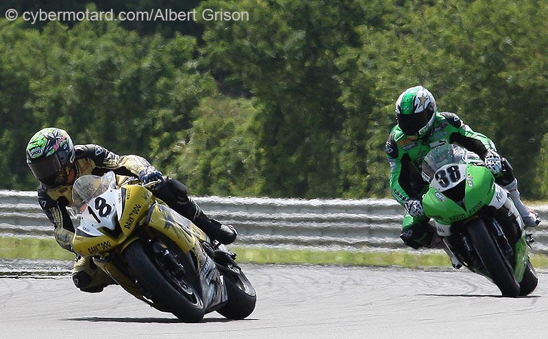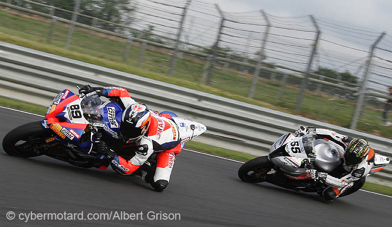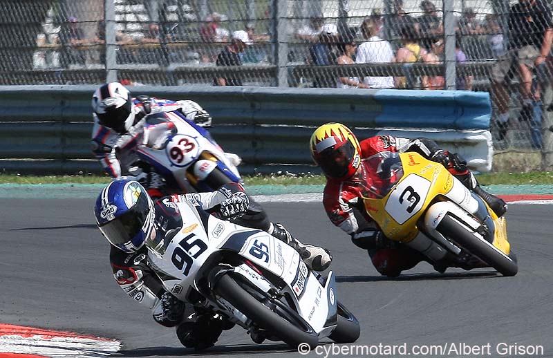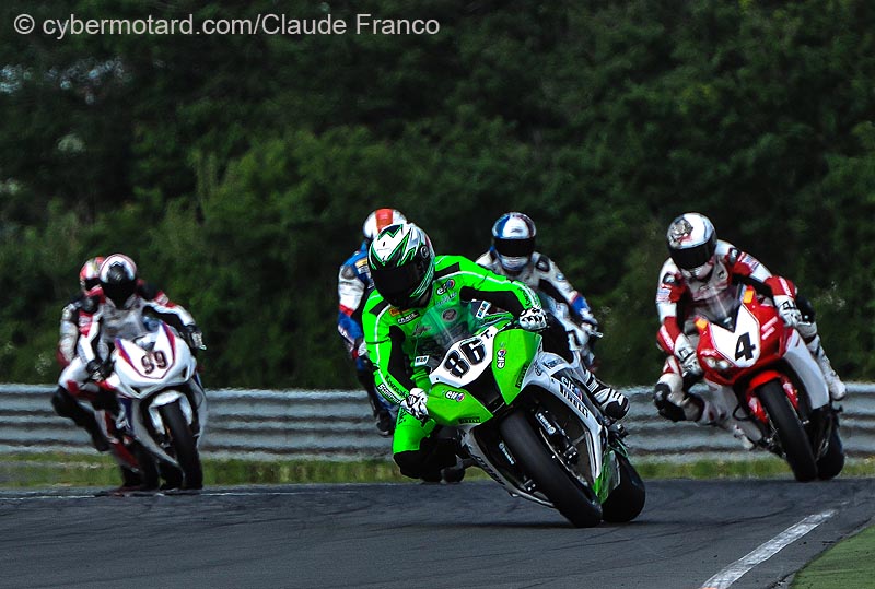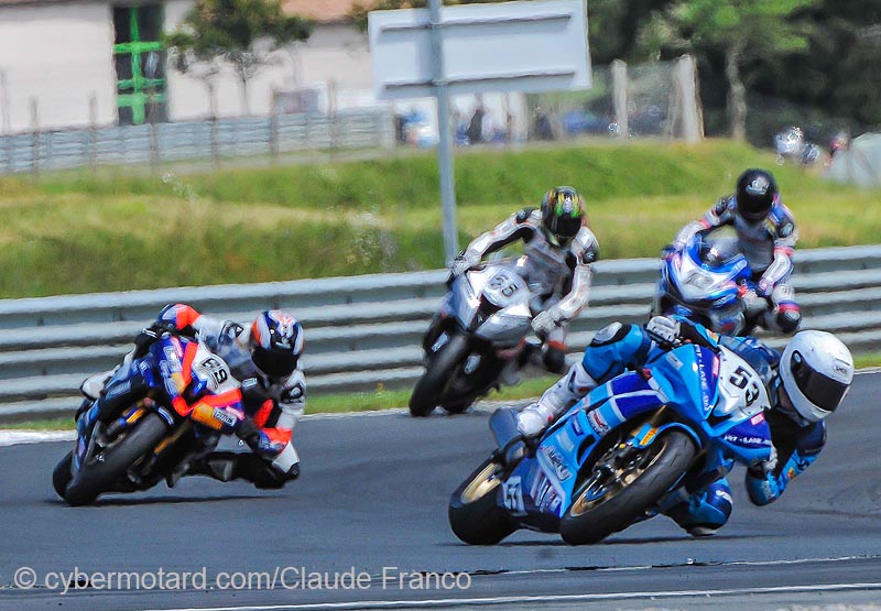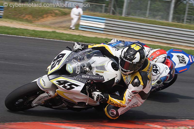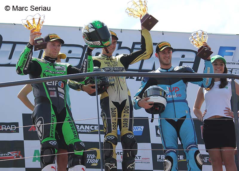 En supersport, David Perret (Yamaha N°18) fait honneur à son co-équipier du team dark Dog : Louis Bulle, en s’adjugeant une victoire sur deux. Mais au classement provisoire, c’est bien Gregory Leblanc (Kawasaki N° 38) qui mène aux points.