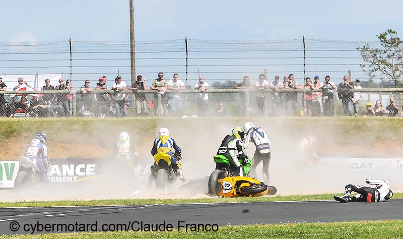 Strike lors du départ de la 2e manche superbikeUn « strike » a lieu lors de la 2e manche du superbike du Vigeant, qui concerne 6 pilotes. Seuls deux d’entre eux pourront repartir, mais cet incident, oblige la direction de course à sortir le « safety car » durant trois tours. |