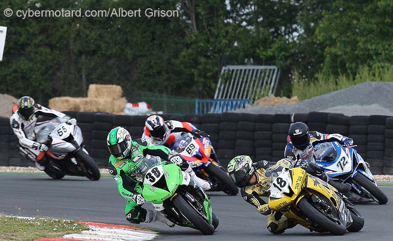 La 2e place du supersport pour Axel MaurinLa chute de David Perret, laisse le champ libre à Gregory Leblanc (Kawasaki N°38) qui compte alors près de 5 secondes d’avance sur le peloton. Peloton qui est mené par Axel Maurin (Yamaha N°89), suivi de près par Etienne Masson (Kawasaki N° 55). Au final le pilote officiel Kawasaki engrange sa 3e victoire de la saison. |