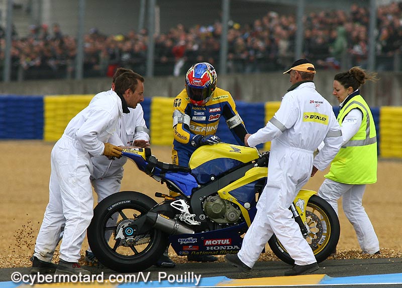 La Honda de National Motos N°55, n’a même pas réussit à boucler un tour : la boîte de vitesse s’est bloqué dès le départ ! |