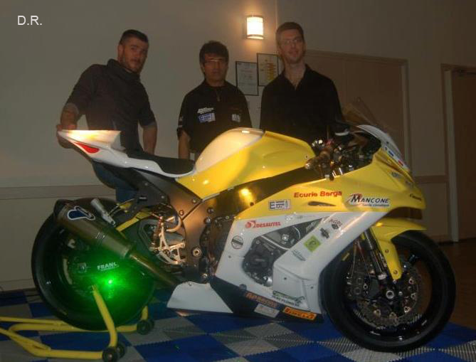 Cette présentation a été l’occasion, pour les deux pilotes, Gérald Dury et Jonathan Hardt, d’apprécier leurs nouvelles montures. Cette année, l’ECURIE BERGA se lance de nouveaux défis en engageant deux Kawasaki ZX10R en championnat de France Superbike. Préparées dans les ateliers du team manager Marc Bertholet, les motos ont passé l’hiver à être conditionnées pour la saison 2013. Le team poursuit sa progression avec ses habituels partenaires techniques : EMC - FMP – AGPL – PIRELLI - AMG FRANCE EQUIPEMENT et les sponsors : MANCONE – DESAUTEL - 2Bbroderie - l’échalote - CG service - Frères déco qui ont renouvelé leur confiance pour cette nouvelle année.