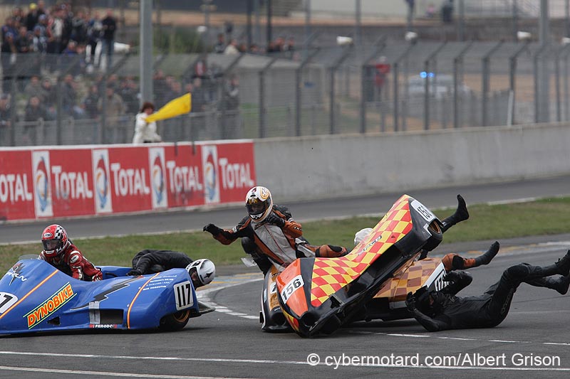 C’est l’équipage Le Bail/Chaigneau qui tire le mieux son épingle du jeu lors du premier rendez vous de la saison 2011 au Mans. En effet cette première confrontation des side cars a été particulièrement mouvementée, avec plusieurs sorties de piste spectaculaires, avec à la clef des blessés !