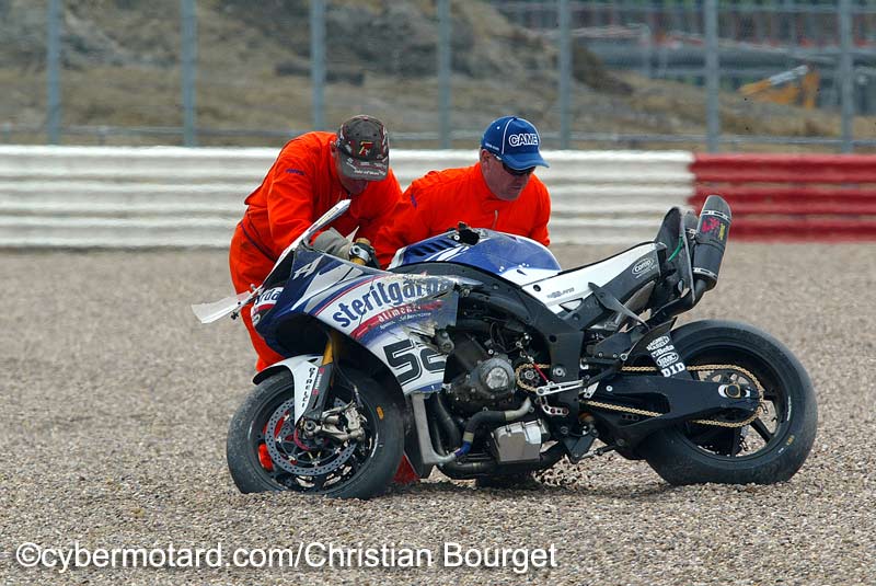 Toseland en diffucultés aux essais de SilverstoneJames Toseland (Yamaha N°52) s’ est fait une belle frayeur lors des essais. Le pilote officiel Yamaha n’ occupe que la 6e place au classement provisoirl, juste derrière son coéquipier. Une place qui ne doit satisfaire le pilote transfuge du MotoGP qui pensait sûrement mieux réussir son retour en Mondial Superbike. |