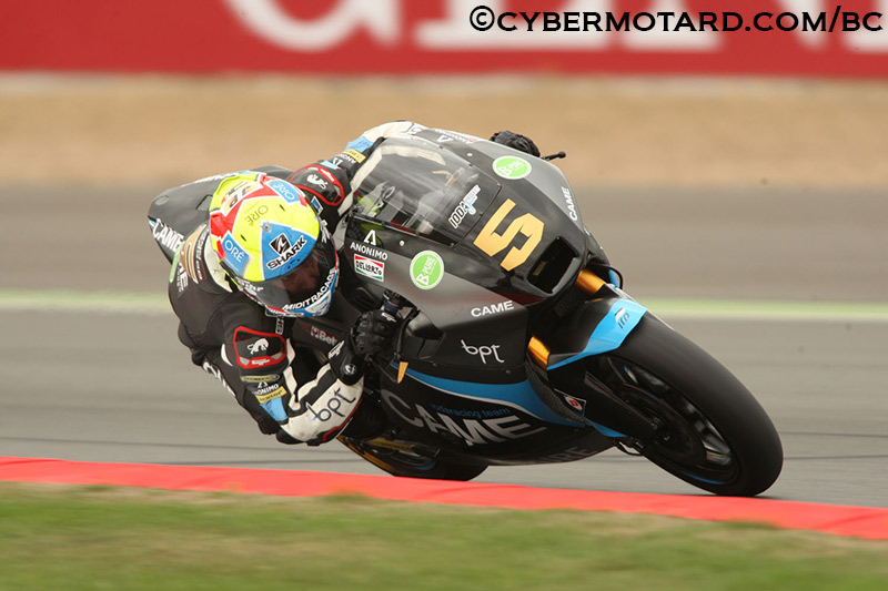 Sur le tracé britannique, lors de la 1e séance d’ essais libres, le pilote tricolore au guidon de sa Suter du team Came Ioda Racing Project réalise son meilleur chrono en 2’08’’209mn.