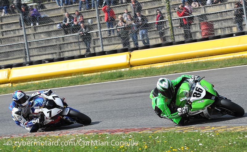 Malgré la météo capricieuse, sur le circuit de Nogaro, Julien Da Costa double vainqueur au Mans, confirme la montée en puissance du binôme Kawasaki-Pirelli. En effet le pilote officiel a remporté la deuxième manche du superbike le dimanche 29 avril 2012. Visiblement il est en train de mettre à mal la domination qu’a exercé Sébastien Gimbert (BMW-Michelin) en 2011. Mais ce dernier , 2 fois deuxième à Nogaro n’entends pas lâcher l’ affaire : vivement le prochain round au Vigeant (26-27/05) pour la suite du duel .