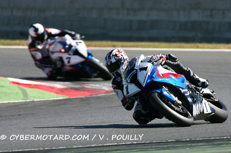 Sébastien Gimbert vainqueur de la 1ere course Superbike.Avec la chute du leader, Julien Da Costa à la voie libre et part en tête. Mais c’est sans compter Sébastien Gimbert, qui le double rapidement. Le coéquipier de Nigon ne quittera plus la 1ere position en creusant l’écart de plus de 2,4 secondes. Avec ces 25 points de gagné, Gimbert se rapproche un peu plus de Nigon. Il reste 2 épreuves au championnat, 22 points seulement séparent les deux leaders. Tout reste donc encore possible pour Gimbert... |