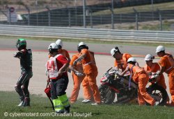 Lors de la 2e manche superbike, Eugene Laverty se loupe au 2e virage et chute. Avec ce double résultat blanc, il laisse son co-équipier Sylvain Guintoli en tête du classement provisoire ! |