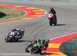 Même si BMW s’offre le doublé au superbike d’Aragon ( grâce à Chaz Davies) c’est bien Sylvain Guintoli qui tire le mieux son épingle du jeu. En effet le français, en montant deux fois sur la 2e marche du podium, prend l’avantage avec une avance de 22 points !