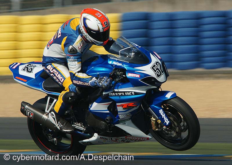 Le retour en force des Suzuki.En catégorie reine, on assiste au retour en force des Suzuki avec deux machines confiées aux mains de Vincent Philippe et d’Anthony Delhalle. Vincent explique son retour dans la catégorie reine « J’étais déçu par la catégorie 600 cc par rapport à mon attente il faut un pilotage agressif, ce qui ne me correspond pas et puis nous n’avions pas les moyens de faire évoluer la moto par rapport au règlement . le 1000cc est beaucoup plus plaisant ça me permet de rouler, de garder le rythme, de rester en forme avec une moto proche de l’endurance dans une équipe que je connais bien celle du junior team . » |