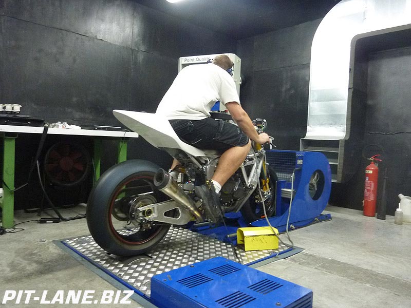 dernier passage au ban de puissanceAvant de partir en Espagne, Ludovic passe la machine sur l’un des ban de puissance installé à demeure au sein des ateliers de MG Compétition. Le savoir faire de ses mécanos est reconnu dans le milieu de la course : c’est eux qui ont préparé le moteur de la Yamaha du Yart, championne du Monde d’endurance en 2009 ! |