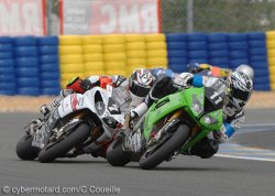 Pendant ces péripéties, la lutte s’avère acharnée entre la Yamaha Austria N°7 et la Kawasaki N°11 pour le contrôle de la première place.