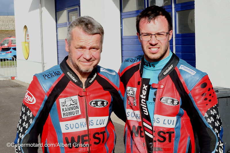 Autres FinlandaisDes compatriotes de Pekka Päivärinta, venus de leur lointaine Finlande, où jadis se rendaient les GP motos, les frères Manninen, Joni, le pilote, à gauche, et Tero le passager. On les a découverts au Mans, ils ont participé à 5 manches sur 7 et pointent à la 12e position au classement final. |