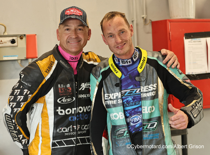 Tim Reeves, come-back !Il n’a pas fait toutes les courses, money oblige ! Il a notamment manqué les 2 manches d’Assen et Most. S’il a commencé avec le britannique Mark Wilkes, c’est avec le hollandais Ferry Seegers (à droite) qu’il roulait à Oschersleben. Si money, RV en 2026 ! |