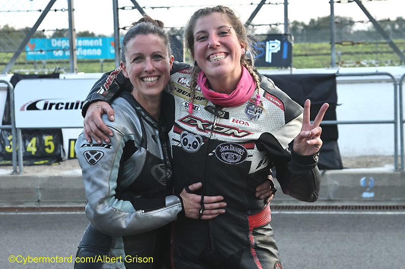 Nouvelle passagère pour Amélie VielOn l’avait découverte à l’Anneau du Rhin pour sa première course FSBK où elle avait dans le panier Emmanuelle Bretonnière. Au Vigeant, Amélie (à droite) emmenait une nouvelle passagère, Laetitia De Cara. |