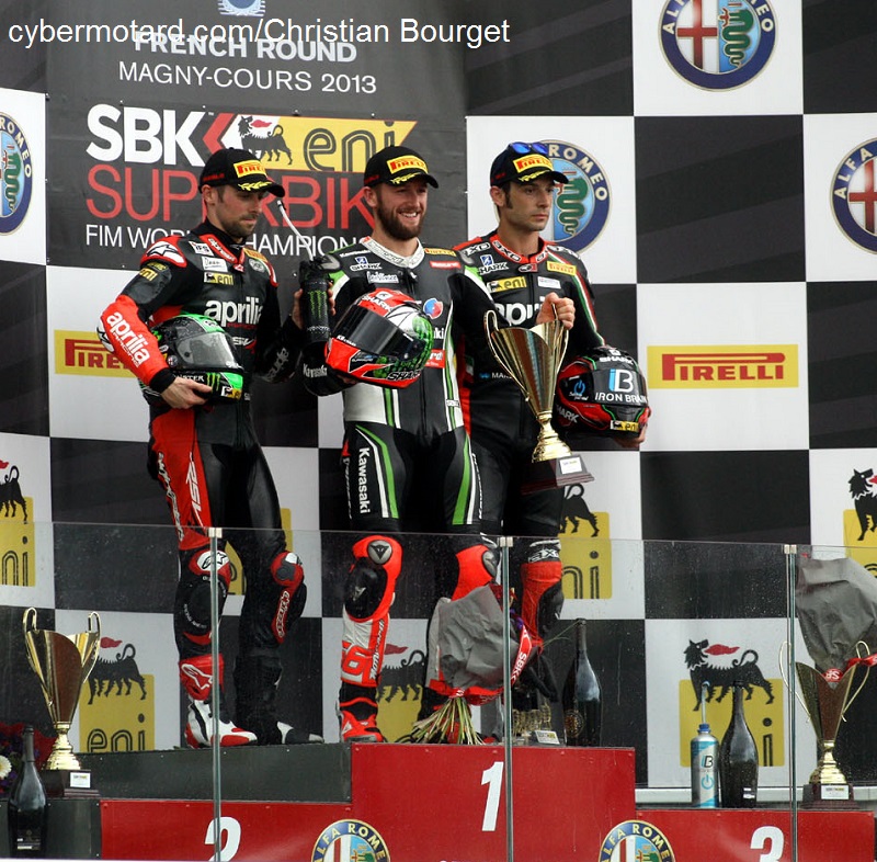 En remportant son 3e doublé de la saison 2013 à Magny Cours, Tom Sykes fait un pas de plus vers le titre du championnat Mondial. En effet il ne reste plus qu’une épreuve : Jerez ( le 20 octobre), l’épreuve en Inde ayant été retirée du calendrier !