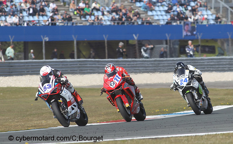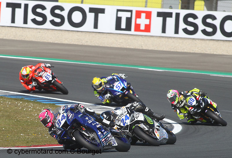 2e victoire de Bendsneyder sur ses terres en première mancheLors de la première manche du samedi 12 avril, Bendneyder ( MV Agusta N°11) remporte sa 2e victoire de la saison. Il a grignoté l’avance de Can Oncu ( Yamaha N°61) de près 1 seconde et 4 dixièmes. Au 8e tour il prend la direction des opérations, et laisse les deux pilotes Yamaha s’expliquer entre eux. |