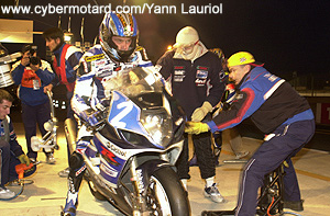 La plus belle remontée de cette nuit est à mettre à l’actif de la Yamaha N°94. Après avoir touché le fond avec une cosse de batterie dessoudée, la parole a été donnée aux pilotes. Igor Jerman et Ludovic Holon ont alignés des temps en 1’43’’, résultat la Yamaha pointe à la 12ème place à 4H du matin. Dans sa lancée elle passe une autre Yamaha, celle d’Endurance moto 38 qui n’a pas été épargnée par le sort non plus. Alors qu’elle occupait la 5ème place en début de course, cette machine qui a remporté les 24H d’Oschersleben en 2002, a connu des problèmes au niveau de l’échangeur sanitaire. "Le temps de remplacer la pièce, on a perdu plus de 20 minutes" explique Jean Claude Claperon son team manager. Tombée à la 40ème place, elle a réussi à pointer en 12e position quatre heures seulement après son arrêt fortuit.