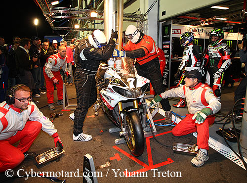 Relais doublés chez KawasakiJulien Da Costa et Gregory Leblanc assurent les relais nocturnes à deux pour permettre à Olivier Four, blessé à la main gauche, de se reposer. La Kawasaki N°11 termine tout de même deuxième du Bol d’Or |