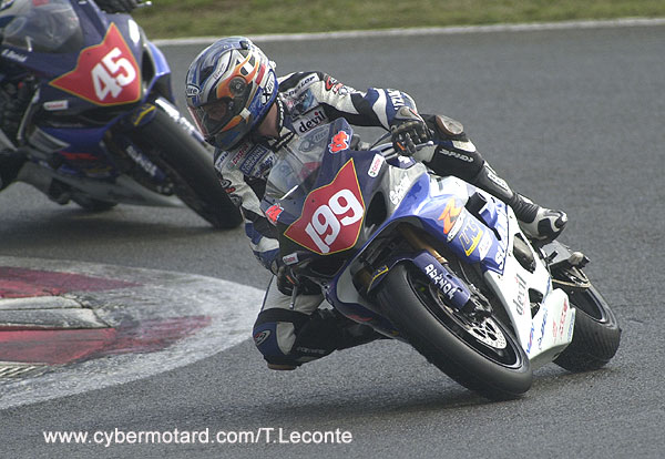 Dès le premier tour il creuse un écart de plus d’une seconde avec Denis Bouan (Yamaha N°4) qui emmène un peloton constitué de Yann Lussiana (N°93), Julien Enjolras (N°88), Franck Pavoine (N°91) et Thomas Metro, seul pilote Suzuki noyé au milieu de la flotte des R-6.