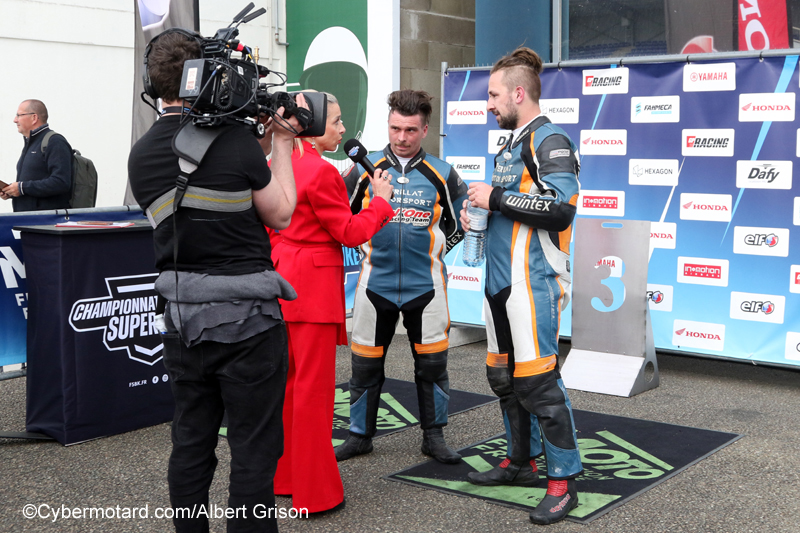 Carton plein pour Clément Carré et Geoffrey Guiard.Clément Carré et Geoffrey Guiard ont dominé les 2 courses dans leur catégorie. En témoignent leur 9e place dans la course 1 et la 6e dans la course 2, devançant pas mal de F1, plus rapides en théorie. Leur ambition 2026 était le TT, mais ce projet est remis à plus tard. Ils donnent une interview à la société Capcha, chargé par la FFM de retranscrire les épreuves en direct. |