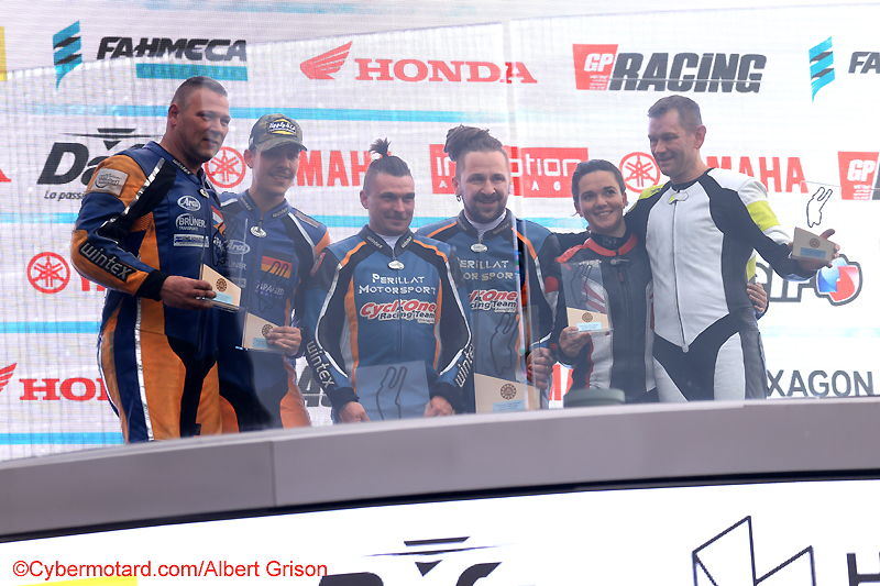 Podium course 1 samediSur la plus haute marche, nos champions Clément Carré et Geoffrey Guiard, sur la seconde les allemands Wiggert Kranenburg et Kevin Kölsch et sur la troisième, Ophélie Palacoeur et Cédric Chevalier. Le podium du dimanche est identique |