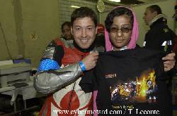 Argument de charmeLes suédois du team Fagersjo.el.se ont des atouts de charme à présenter lors de la visite des stands ce vendredi 15 avril 2005. La grenouille du stand voisin est aux premières loges pour profiter du spectacle. |