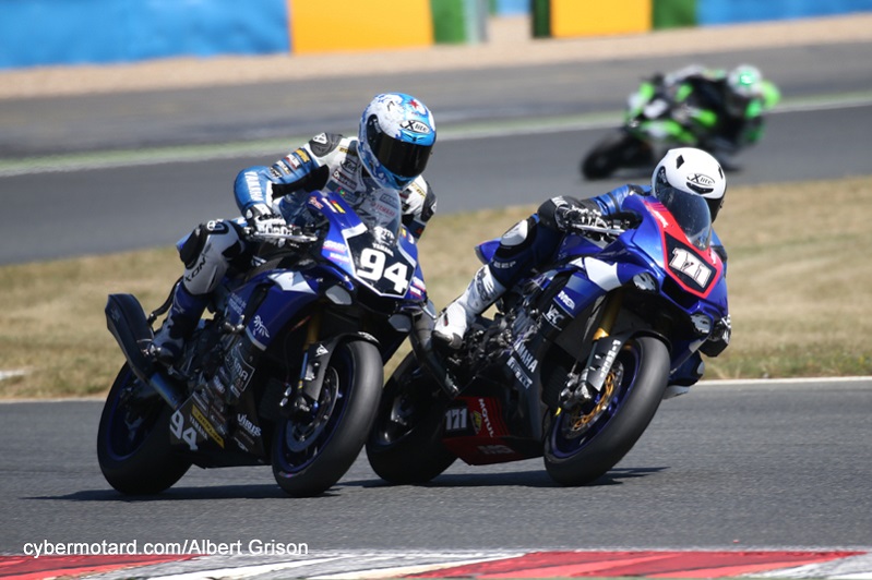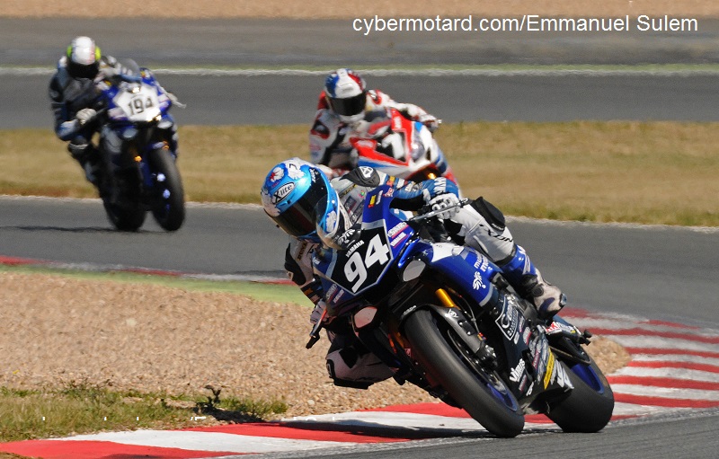 Une wild card satisfaisante pour Julien MilletLongtemps pointé 5e dans la 2e manche superbike, Julien Millet ( Yamaha – stock N°25) se permet de mener devant Greg Black (Suzuki Evo- N°16), Nicolas Salchaud (Yamaha Evo N°15) et David Muscat ( Ducati N°3). Hélas alors qu’il ne reste que 4 tours de course il se fait passer par la paire de ses poursuivants.
