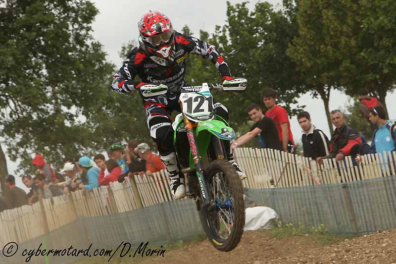 Christophe Pourcel, deuxième à Saint Jean d’AngélyVainqueur facile de la manche qualif, Christophe Pourcel (n°377) n’a pas retrouvé cette superbe lors des manches officielles. Dominé en vitesse par Cairoli et Paulin, le pilote CP377 Monster Kawasaki n’a pas pris tous les risques par manque de feeling sur le sol charentais, sec et glissant. Jouant le championnat plutôt que l’épreuve, le Marseillais finit deuxième du GP (3e/2e). |