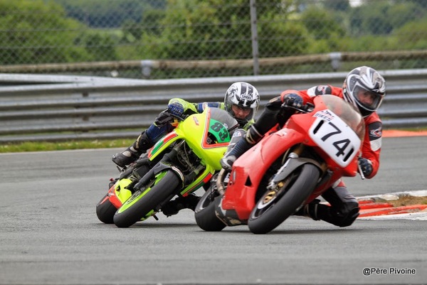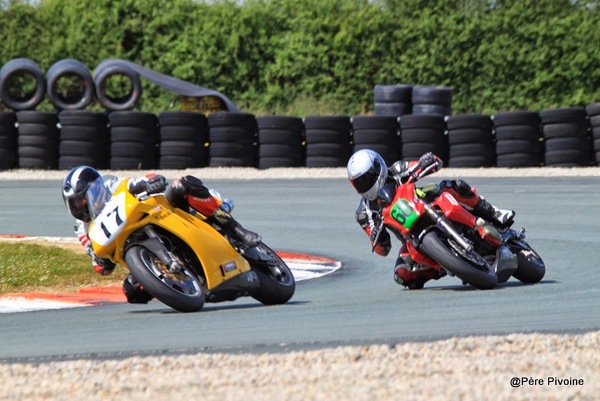 Cyril et FrançoisLes inséparables ! C’est une habitude de retrouver Cyril Gendron à la lutte avec François Papillon, Ducati 748/1026 cm3 contre Kawa ER6. Cyril s’impose et François complète le top 10. Au classement scratch, avantage pour François avec une 7e place, il reste leader du classement moins de 850 avec ses 2 places de 2e. |