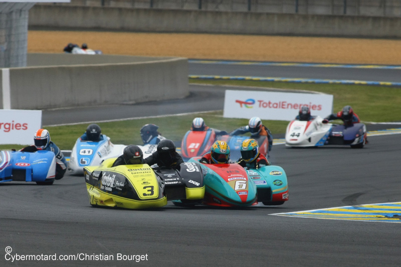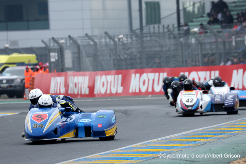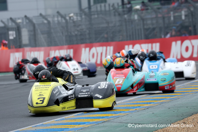 Baptême du feu pour Tristan GadetTristan Gadet est le fils de Stéphane Gadet qui participe à notre FSBK depuis des années. forfait pour ce Mondial à la suite de sa cabriole ici même il y a 2 semaines en FSBK.Tristan disputait sa toute première course de Mondial en pilote et emmenait le populaire et expérimenté Christian Chaigneau. Ils ont terminé les 2 courses, ce qui est déjà une victoire ! |