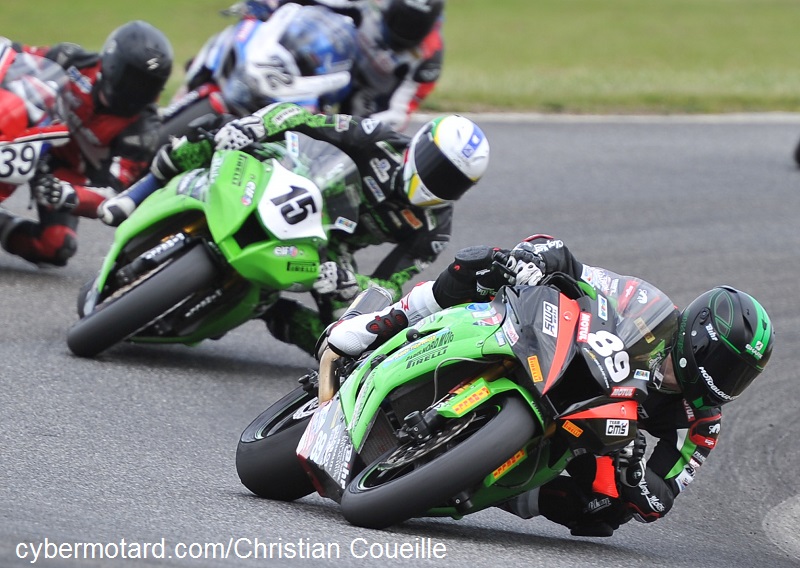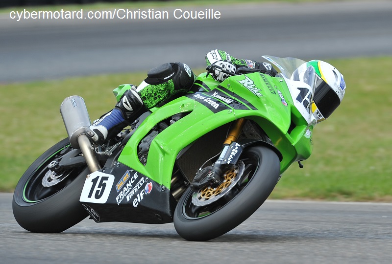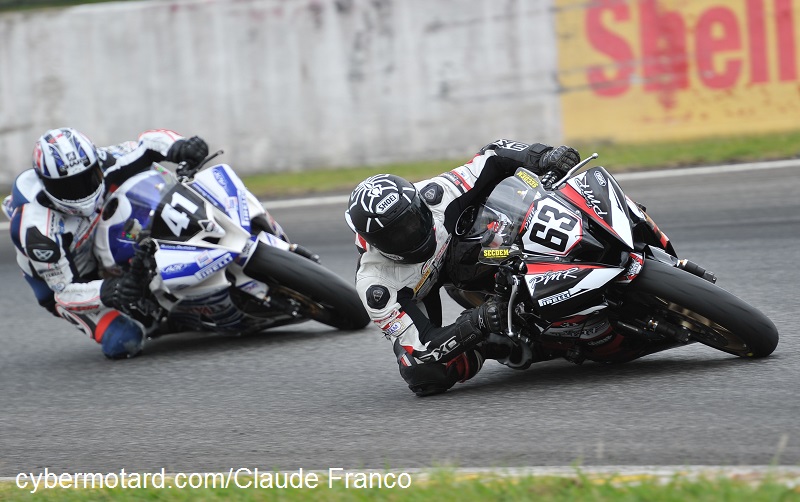 Axel Maurin toujours brillant en superbikeTombé alors qu’il bagarrait pour la 5e place le samedi, Axel Maurin (Kawasaki N°89 –Pirelli ) s’est bien rattrapé le dimanche en occupant de bout en bout la place de dauphin de Grégory Leblanc. En deuxième manche il laisse Nicolas Salchaud (Kawasaki N°15) a plus de 12 secondes !