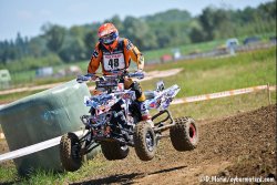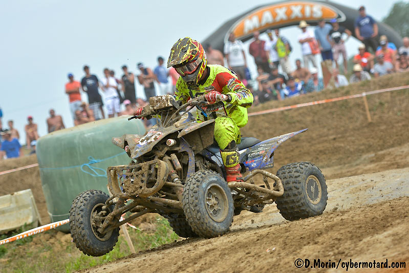 <A name="decomblepdv16">Début remarquable de Jimmy Decomble à Pont-de-Vaux</A>Pilote moto passé au quad il y a moins de deux ans, Jimmy Decomble (Yamaha Clody n°25), bien épaulé par les Belges Timothée Hieff et Peeter Collart, prend la 9e place du classement final des 12 heures de Pont-de-Vaux 2016. Sans un accrochage nécessitant réparation en manche 1 et une erreur de pilotage en fin de manche 3, le résultat de l’équipage aurait pu être encore meilleur. |