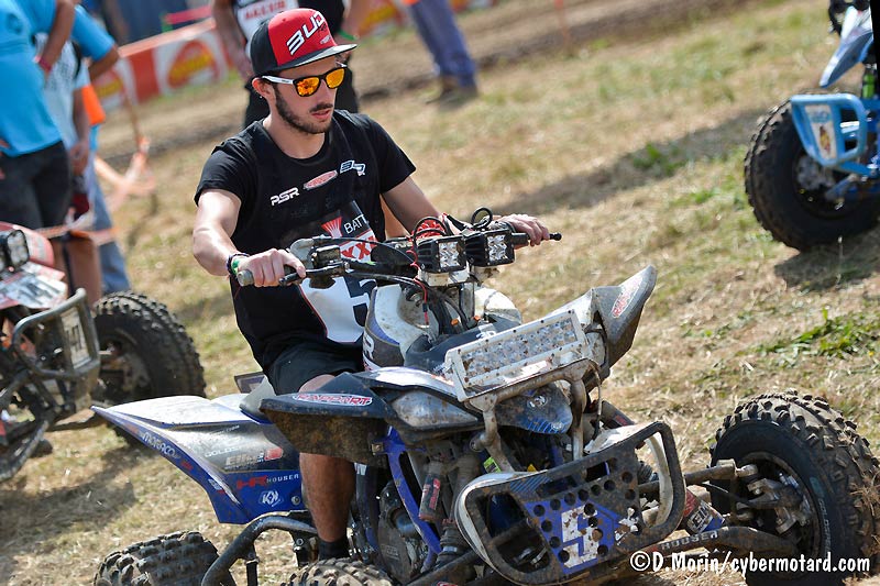Venu « dire bonjour », Pierre Platz s’est retrouvé au départ du 30e Mondial du QuadEncore à pied le jour des vérifications, Pierre Platz (n°10) a cédé au pressing exercé par Christian Lallemand, le grand manitou du team Clody, pour compléter le duo initial Warnia/Lallemand. Un retour au guidon après une longue pause due à une blessure sur (grosse) chute et un blocage psychologique. Les sensations sont finalement revenues assez vite malgré le manque de compétition. |