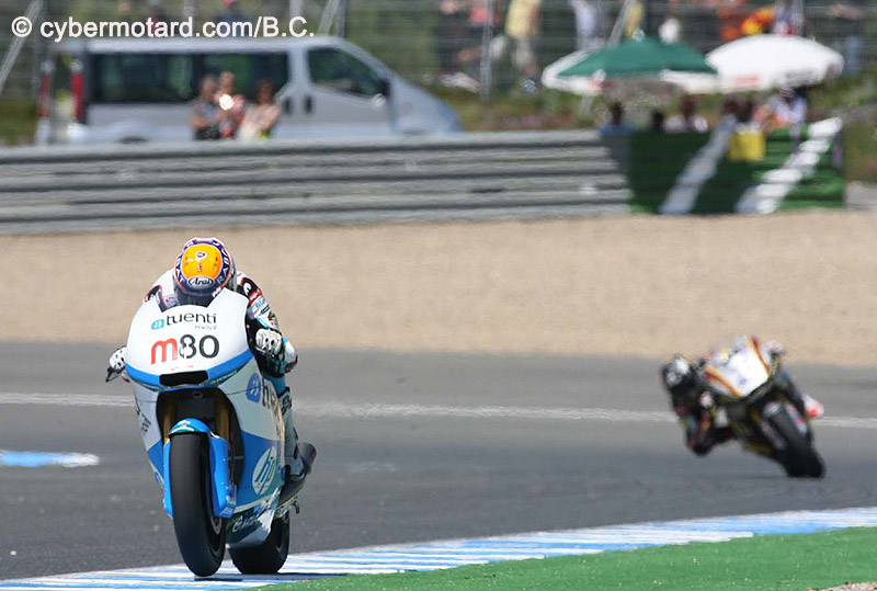 Esteve Rabat n’a fait qu’une bouchée de ses adversaires sur le circuit de Jerez. En effet, après avoir remporté la pole position, samedi 4 mai 2013, le pilote du team « Tuenti HP 40 » réalise un cavalier seul. Il franchit la ligne d’arrivée avec plus de 4 secondes d’avance sur son poursuivant immédiat : Scott Reding !