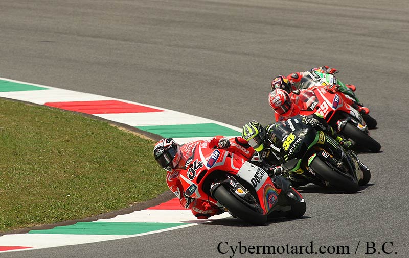 Cal Crutchlow encore sur le podiumIci en bagarre avec les Ducati officielles, Crutchlow réalise une belle performance et se classe 3e. Au championnat, il est désormais 4e derrière le trio des intouchables Espagnols, Lorenzo, Pedrosa et Marquez. |