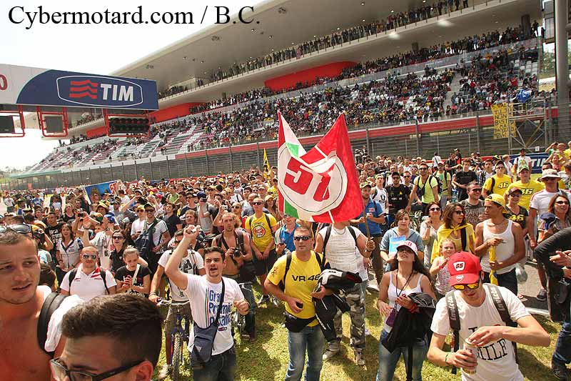 Un public au pied du podiumC’est une tradition au Mugello : Le public envahit la piste après la course et se presse au pied du podium. Malheureusement, aucun Italien à acclamer ce jour... |