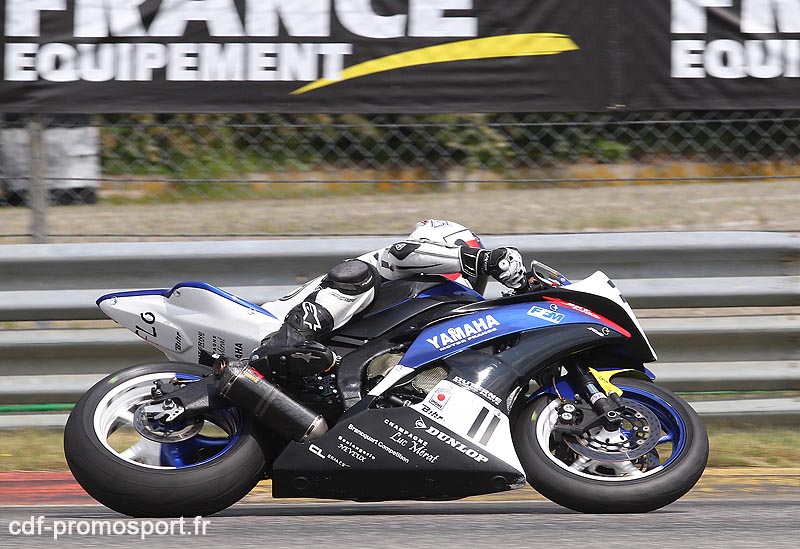 Florent Manniez (Yamaha N°11) n’a pas eu la partie facile en 600 promosport. Il a dû se battre contre Maxime Gucciardi (Yamaha N°77), puis Benjamin Belloeuvre (Kawasaki N°96) et Jérôme Danton (Kawasaki N°3).