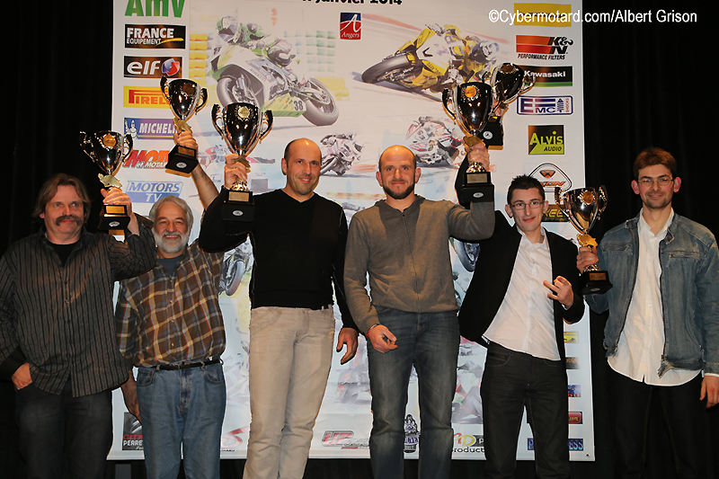 Troisième titre de champion de France pour Sébastien LavorelLa scène se passe dans la belle ville d’Angers, le 11 janvier 2014, où a eu lieu pendant plusieurs années la belle remise des récompenses vitesse, aujourd’hui disparue... C’est le troisième titre pour Sébastien Lavorel. De gauche à droite, sur la photo : Philippe Lebail, Christian Chaigneau, Sébastien Delannoy, Sébastien Lavorel, Jonathan Huet, Sébastien Arifon |