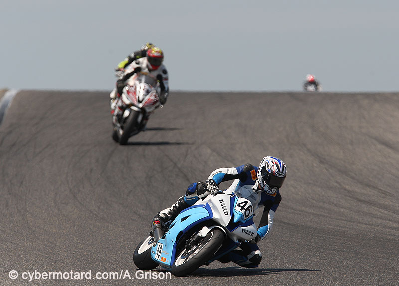 Mais c’est bien le pilote de La Suzuki N°86 qui réalise le meilleur départ. Hélas pas pour longtemps, car au 2e tour, Gregory Leblanc s’empare des rênes de la course, suivi de David Muscat (Ducati N°3).