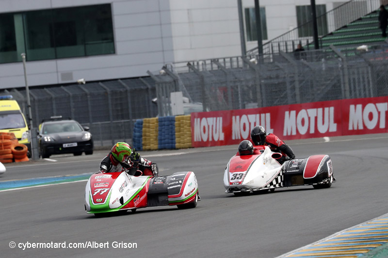 Week-end galère pour Manuel Moreau et Jonathan BrichardManuel Moreau roulait au Mans sur un side prêté par Harrald Endeveld, un RSR Suzuki, pas de première jeunesse. C’était ça ou rien...Malheureusement, il faudra changer un roulement de roue avant, puis Jonathan tombera dans le Dunlop le samedi, d’où le forfait de Manuel pour la course du soir malgré un superbe 2è chrono aux essais. Le dimanche, il finira, avec Clément dans le panier, sixième avec un moteur pas au mieux de sa forme.