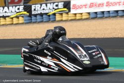 Stéphane Gadet, de passager à piloteOn connaissait Stéphane Gadet, passager pendant quelques années de Manuel Moreau. Il s’est mis cette saison au pilotage du LCR Kawasaki (15) que pilotait Manuel l’an dernier. Dans son panier, Clotilde Salmon, qui roulait auparavant avec le britannique Stephen Hicks, en F2 600. Evidemment, piloter un surpuissant F1 demande un temps d’adaptation. Ils termineront 18è le dimanche en améliorant leur tout premier chrono du vendredi de 34 " ! |